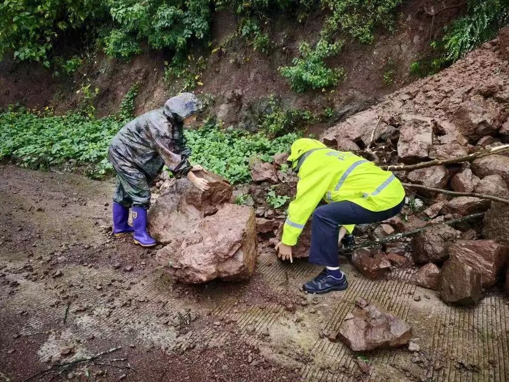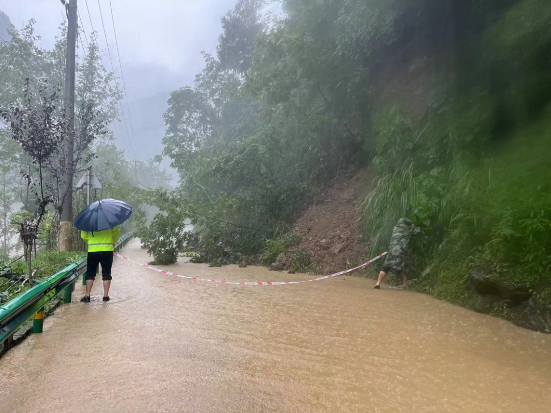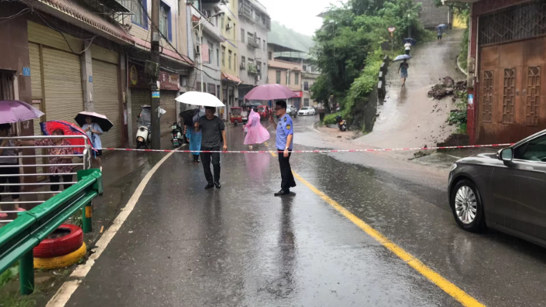 沙市镇出现山体滑坡工作人员现场设置警戒线