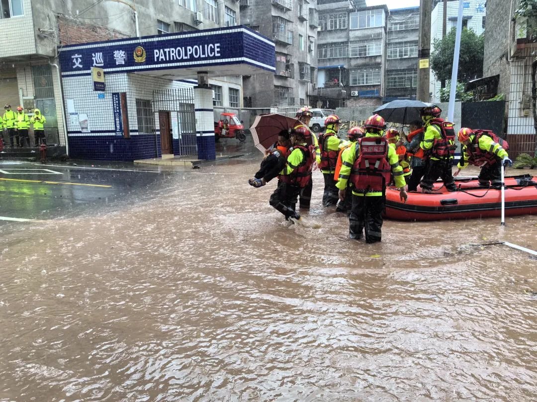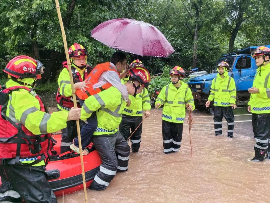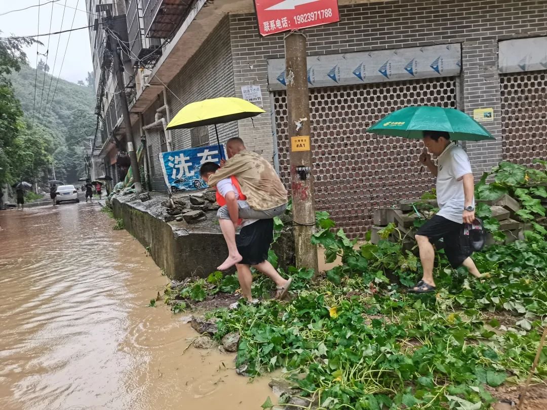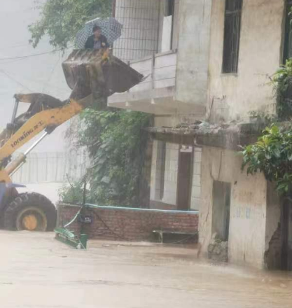 江口镇石桥渡被淹,救援小组人员紧急疏散受困群众